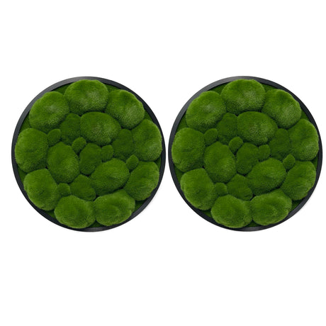 Artificial bun moss wall circular art panel aluminium Black - 30cm x 2