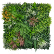 Artificial green wall panel with mixed green orange red and white foliage, white and yellow flowers 100x100 cm