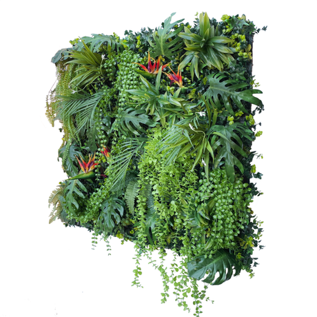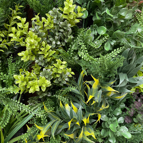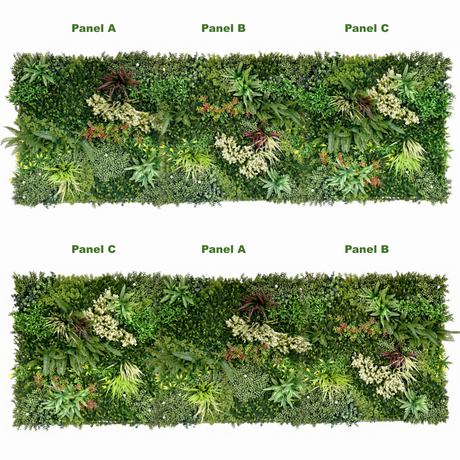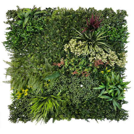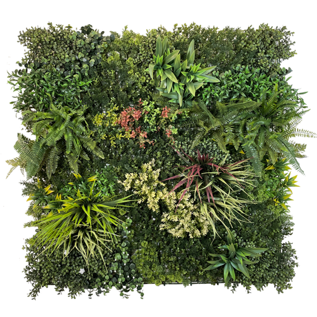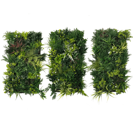 Combo of 3 x Artificial green wall panel with variegated mixed green red and white foliage
