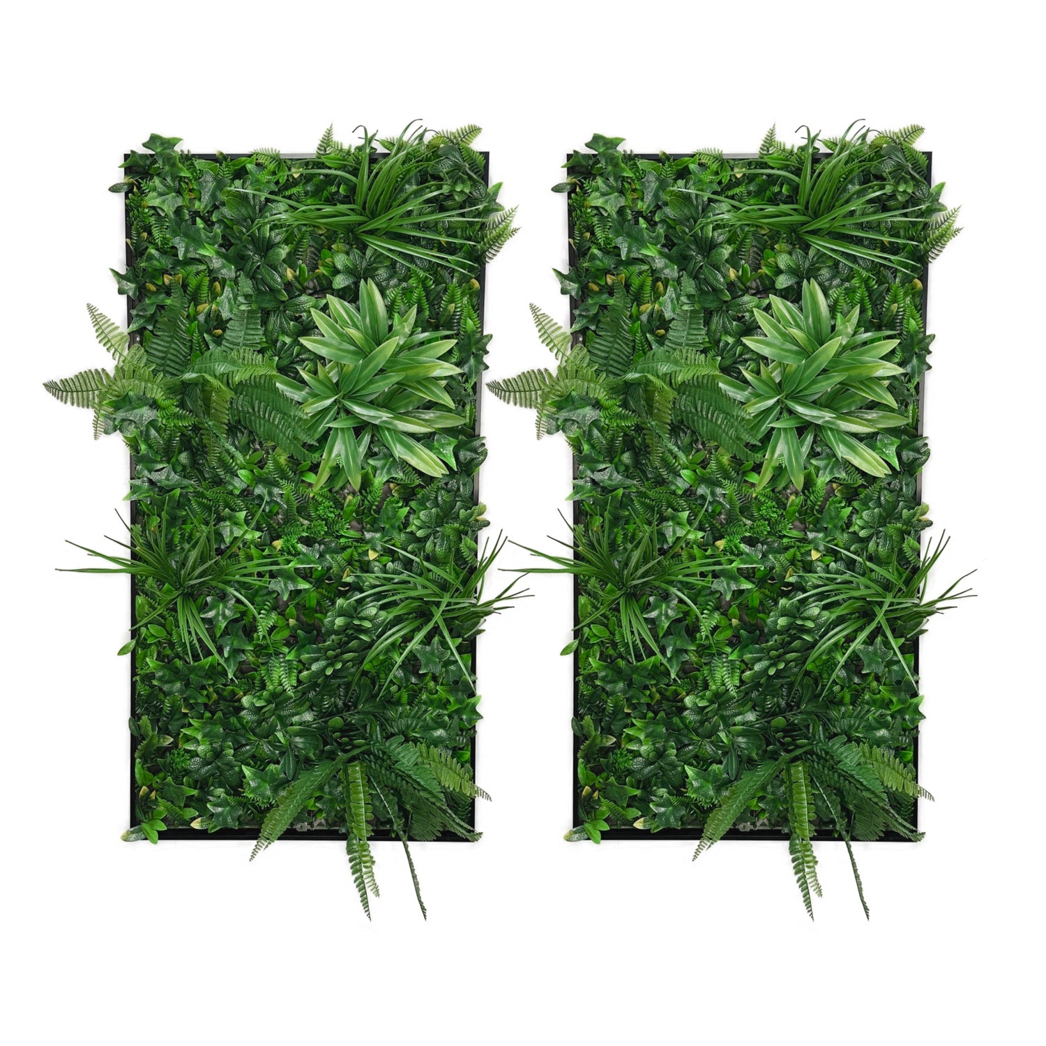 Artificial green foliage wall rectangle art panel aluminium black - 2 x 100x50cm frames