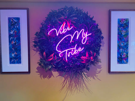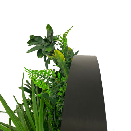 Artificial green foliage wall circulare art panel black aluminium - 2 x 50cm
