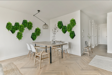 Artificial mixed green foliage in a hexagonal aluminium frame