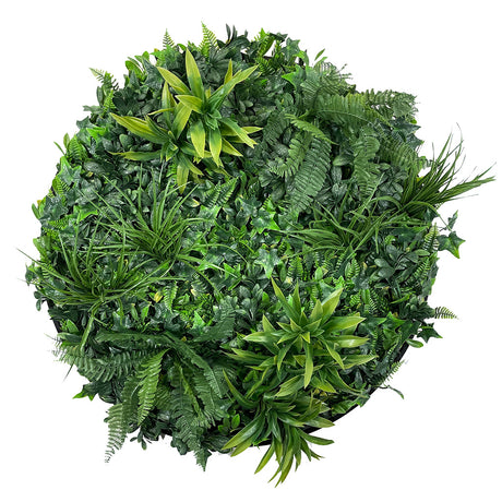 Artificial outdoor green foliage wall circular art panel 80 cm black aluminium