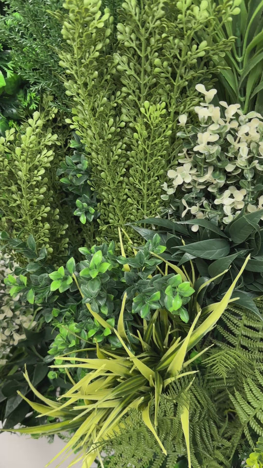 Our ultra realistic 3D plant panels will arrive flattened in the box, you will need to pull and fluff out the foliage to make the wall as realistic as possible. For each individual bush pull some of the foliage out from the rear frame and tease the leaves into shape. Be sure to tease the foliage over to hide any gaps. The video demonstrates how to do this.